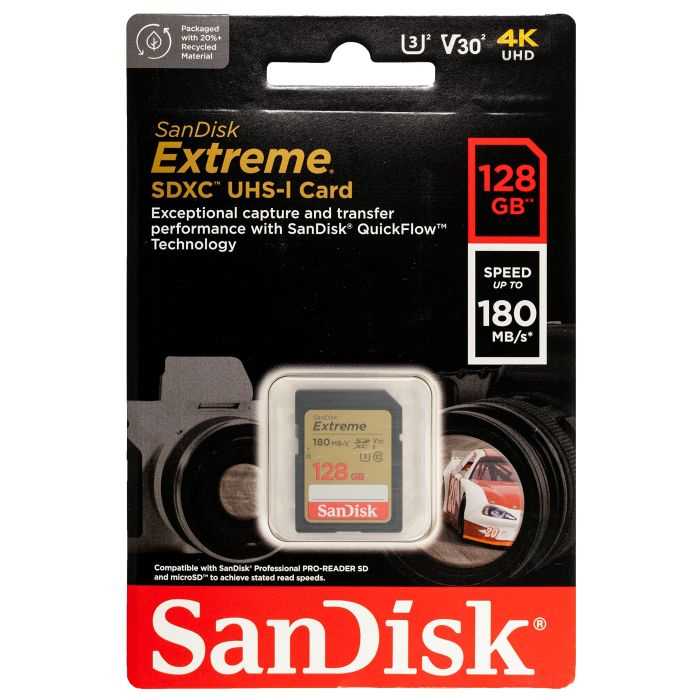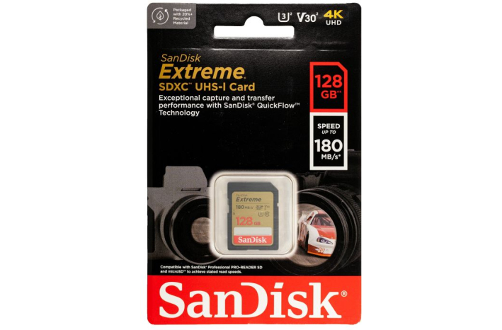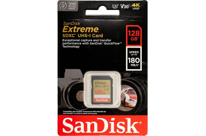 SanDisk Extreme 128GB SDXC spominska kartica + 1 leto RescuePRO Deluxe do180MB/s & 90MB/s branje/zap