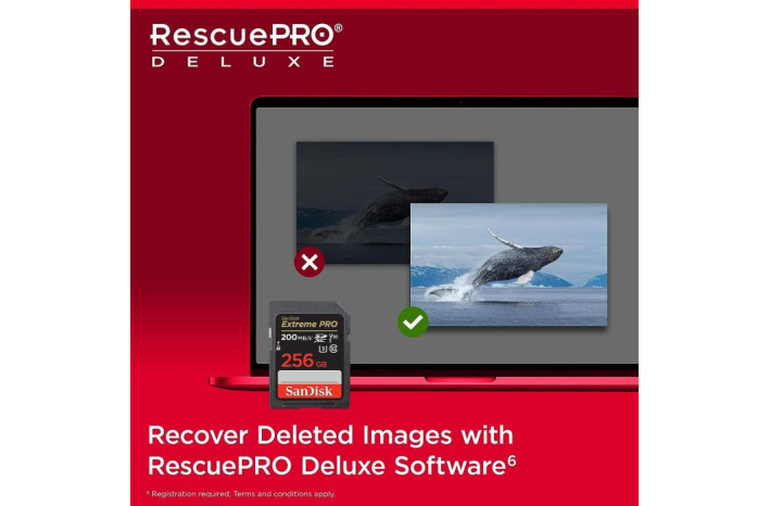 Vključuje ponudbo za 2-letno programsko opremo za obnovitev podatkov RescuePRO® Deluxe4, ki vam omogoča obnovitev slik, ki ste jih pomotoma izbrisali.