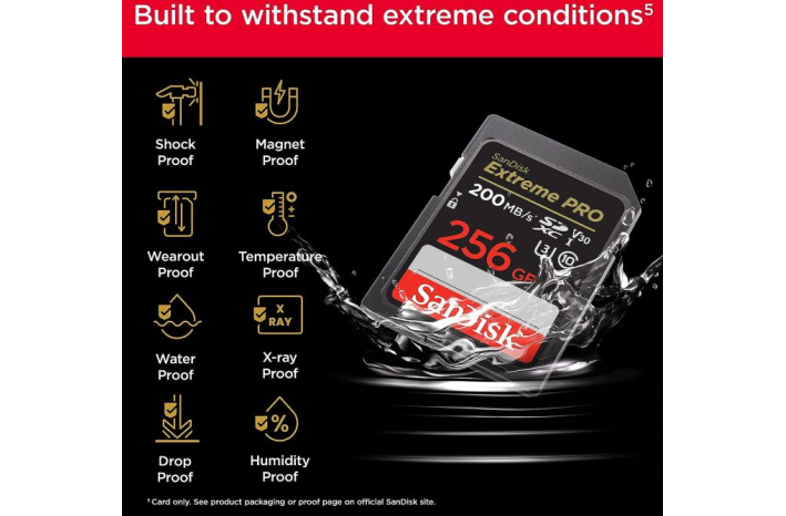Kartica SanDisk Extreme PRO SD UHS-I, izdelana za in preizkušena v težkih pogojih3, je odporna na temperaturo, vodo, udarce in rentgenske žarke.
