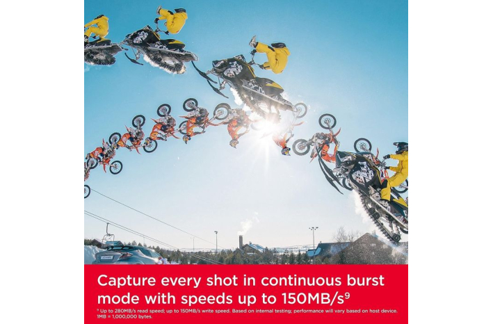 Zagotovite si izjemne rezultate pri fotografiranju v neprekinjenem rafalnem načinu in časovnem zamiku s hitrostjo posnetka do 150 MB/s*. Ne glede na to, ali se odločite za snemanje slik RAW z bogatimi podrobnostmi za večjo prilagodljivost urejanja po fotografiranju ali običajnih datotek JPEG, vam lahko kartica SanDisk Extreme PRO® UHS-II sledi.