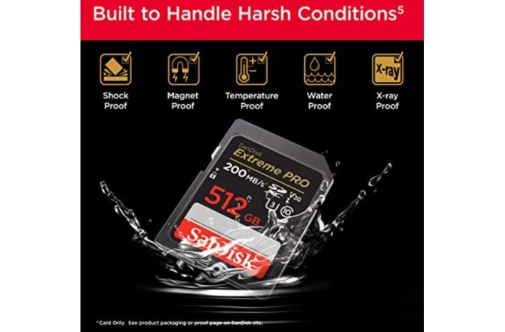 Kartica SanDisk Extreme PRO SD UHS-I, izdelana za in preizkušena v težkih pogojih3, je odporna na temperaturo, vodo, udarce in rentgenske žarke.