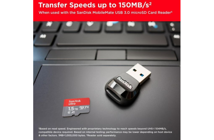 Izjemne hitrosti prenosa vam omogočajo hitro razkladanje kartic. Uporabite s čitalnikom kartic SanDisk® MobileMate® USB 3.0 microSD™6 za doseganje hitrosti do 150 MB/s.