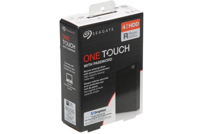 Seagate One Touch (STKY1000400) je robusten 1 TB USB 3.0 zunanji disk s kovinsko ohišje in strojno šifrirano zaščito z geslom. Ponuja sekvenčno prenosno hitrost do 130 MB/s in deluje brez namestitve programske opreme. Naprava vključuje funkcijo samodejnega varnostnega kopiranja prek orodja Toolkit, Rescue Data Recovery, leto dni naročnine Mylo Create in štirimesečno naročnino Adobe Creative Cloud Photography. Združljiv je z operacijskimi sistemi Windows, macOS in Chrome OS, brez potrebe po preformatiranju.