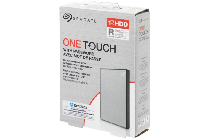 eagate One Touch (STKY1000401) je robusten 1 TB USB 3.0 zunanji disk s kovinsko ohišje in strojno šifrirano zaščito z geslom. Ponuja sekvenčno prenosno hitrost do 130 MB/s in deluje brez namestitve programske opreme. Naprava vključuje funkcijo samodejnega varnostnega kopiranja prek orodja Toolkit, Rescue Data Recovery, leto dni naročnine Mylo Create in štirimesečno naročnino Adobe Creative Cloud Photography. Združljiv je z operacijskimi sistemi Windows, macOS in Chrome OS, brez potrebe po preformatiranju.