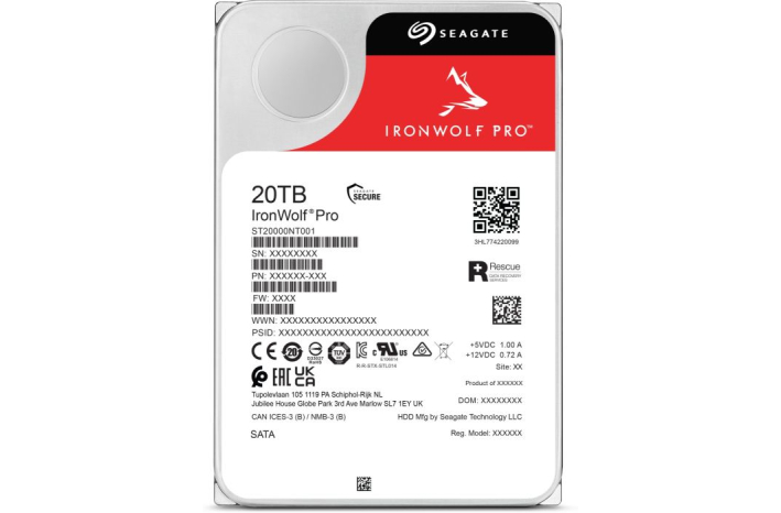 Seagate ST20000NT001 iz linije IronWolf Pro je zasnovan za neprekinjeno delovanje v profesionalnih NAS sistemih z do 24 ležišči. Disk ponuja kapaciteto 20 TB, SATA 6 Gb/s vmesnik, 7200 RPM hitrost vrtenja in 256 MB predpomnilnika za učinkovito upravljanje podatkov. Namenjen je okoljem z velikimi delovnimi obremenitvami (do 550 TB na leto). Integrirana tehnologija AgileArray™ omogoča ravnotežje, TLER in senzorje vibracij (RV), disk pa vključuje tudi IronWolf Health Management za spremljanje stanja in zaščito podatkov.