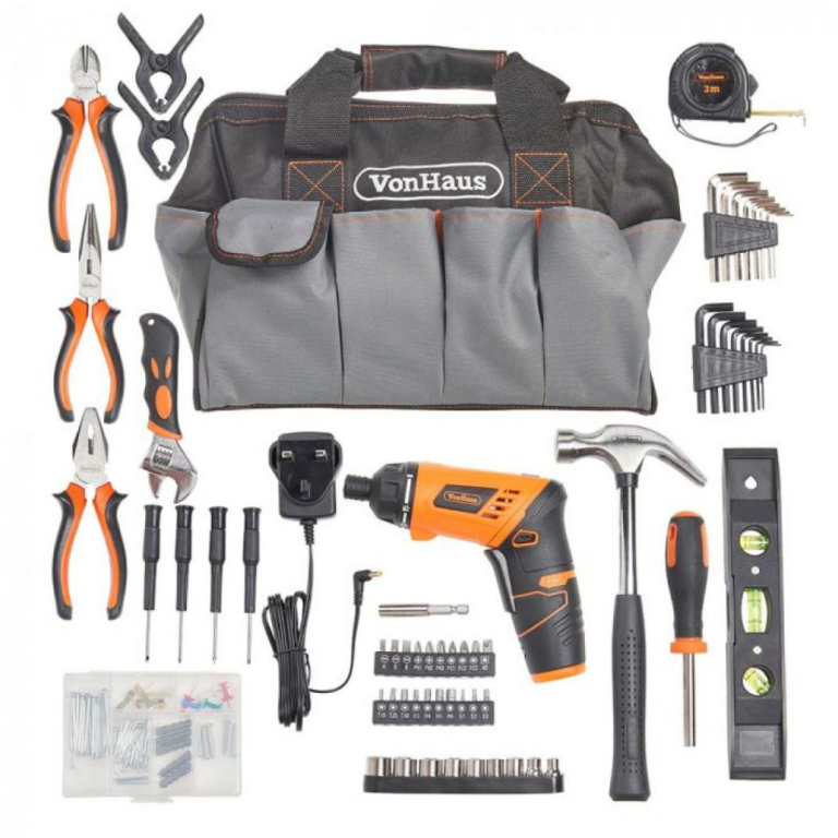V kompletu je 94 posameznih kosov, vključno s ključi, kladivom, kleščami ter izborom ročnih izvijačev in imbus ključev, ki bi morali pokrivati vse manjše naloge.