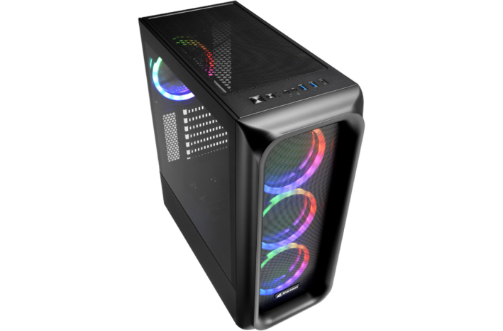 Ohišje ATX TK5M RGB zmaguje v vseh kategorijah: zračno prepustna mrežasta sprednja plošča in štirje vnaprej nameščeni 120 mm RGB LED ventilatorji zagotavljajo dober rezultat za hlajenje strojne opreme. V/I plošča je opremljena z dvema vhodoma USB 3.0 in ima celo vrata za USB Type-C 3.2 Gen 2. Stranska plošča iz kaljenega stekla omogoča globok vpogled v notranjost ohišja, ki jo lahko živo osvetlite s pomočjo 4 -port RGB krmilnik s 14 izbirnimi načini osvetlitve.