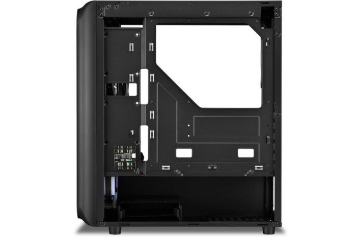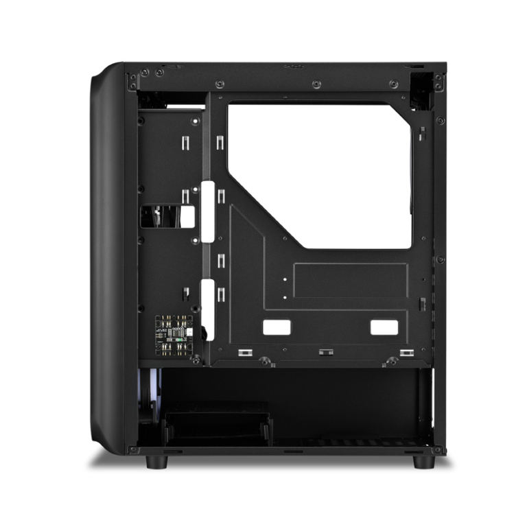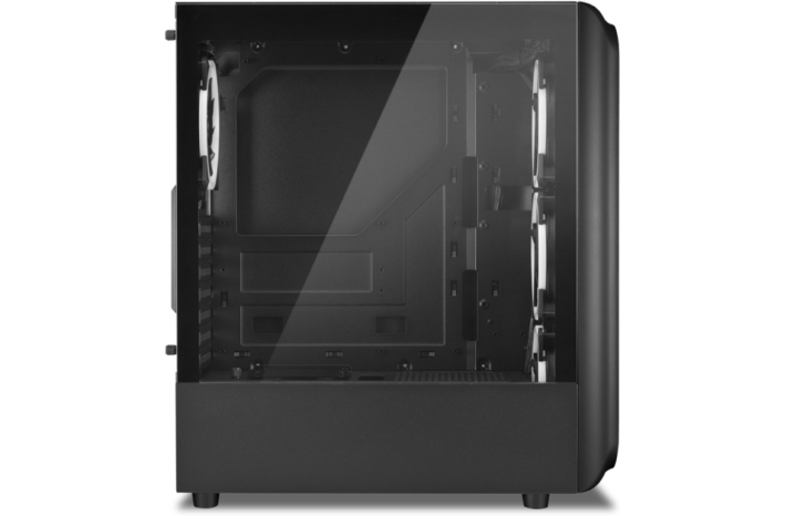 Stranska plošča TK5M RGB je izdelana iz kaljenega stekla in omogoča optimalno predstavitev vgrajene strojne opreme, napajalni tunel pa nudi prostorsko varčno lokacijo za napajalno enoto. Za stalno urejen videz lahko kable napeljete izven vidnega polja s pomočjo kabelskih prehodov.