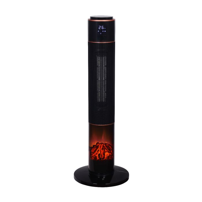 SHX keramični stolpni grelec z učinkom kamina združuje sodoben dizajn in prijetno toploto. Kamin efekt z realističnim vzorcem plamena pričara ambient pravega ognjišča, ki ga lahko vklopite tudi samostojno, brez gretja.