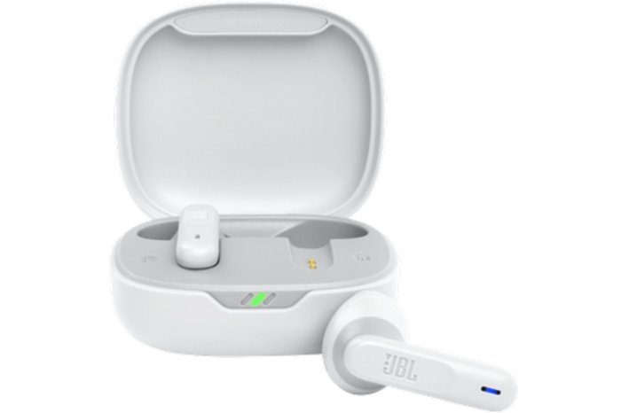 Udobne in varne brezžične slušalke JBL BT Wave 300TWS v beli barvi.