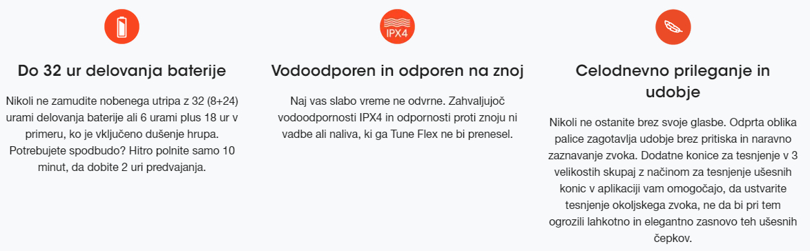 Uživajte v brezskrbnih prostoročnih klicih v stereo načinu. Tune Flex je opremljen s 4 mikrofoni, tako da vas bodo vedno slišali popolnoma jasno. Nikoli več ne oklevajte, da sprejmete ali opravite klic. In z VoiceAware lahko izberete, koliko lastnega glasu želite slišati, tako da nadzirate količino vhoda mikrofona, ki je usmerjen nazaj v vaše ušesne čepke.