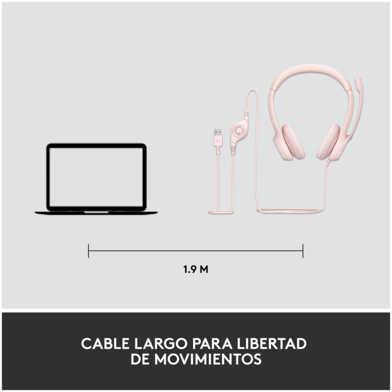 Elegantne slušalke Logitech H390 v roza barvi z mikrofonom in udobnimi blazinicami.