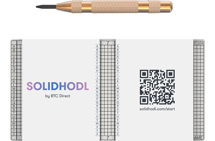 Ko ste semensko frazo zabeležili, lahko dodatno zabeležite še "IME". To je priporočljivo, kadar uporabljate varnostno kopijo za več različnih denarnic. Nato plošči shranite na varno, na primer v sef.