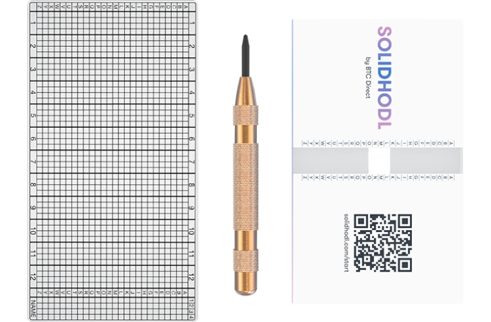 Plošča SOLIDHODL je na obeh straneh gravirana. Gravura je globoka 0,1 mm in pobarvana s črno barvo za boljšo berljivost.