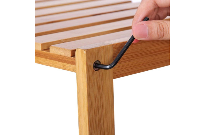 S privlačnim bambusovim videzom se lepo zlije z vsakim prostorom. Vsi vijaki so skriti v bambus, robovi pa so polirani in zaobljeni, kar preprečuje poškodbe in zagotavlja varno uporabo.