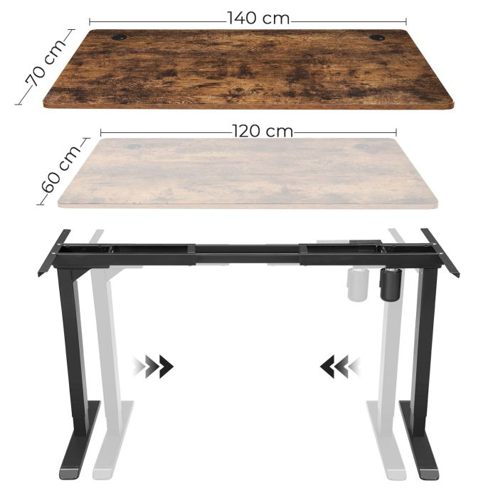 SONGMICS Električni okvir stoječe mize z motorizirano nastavitvijo višine, nastavljiva dolžina, jeklo, črna LSD010B01V1