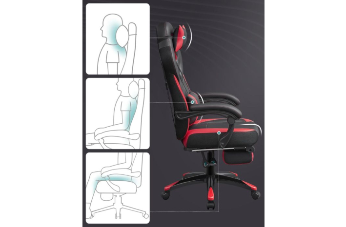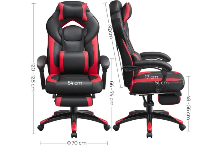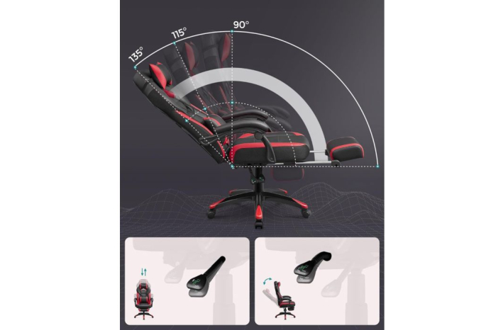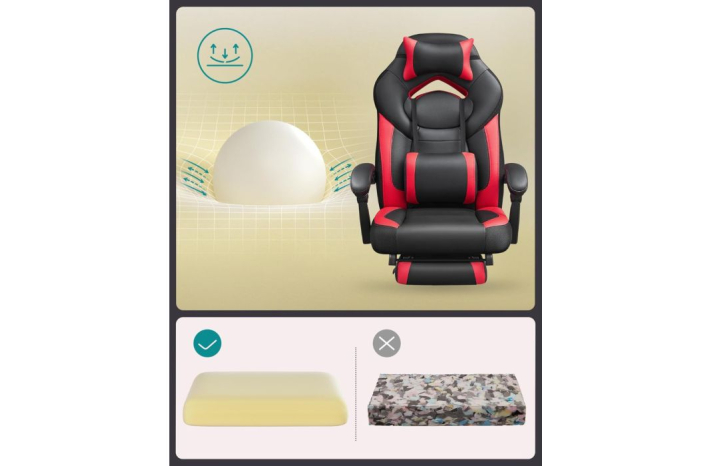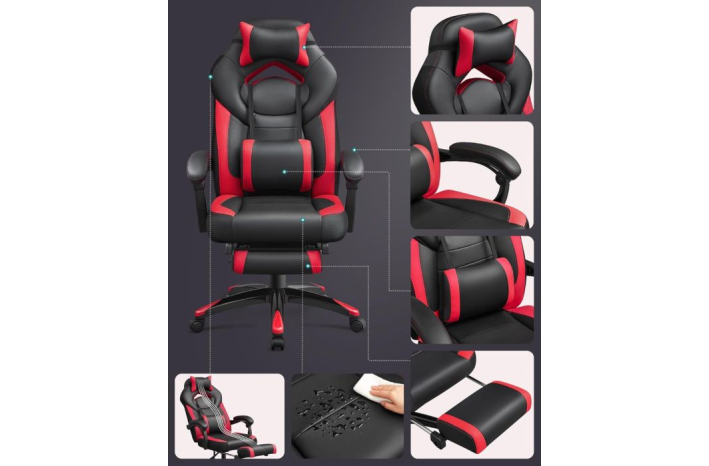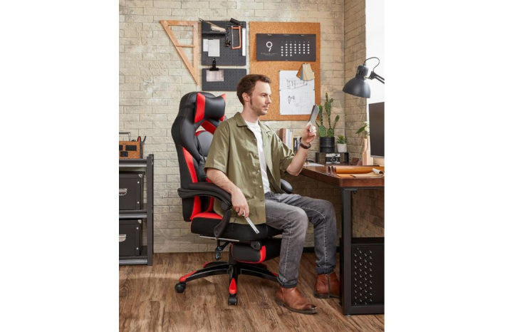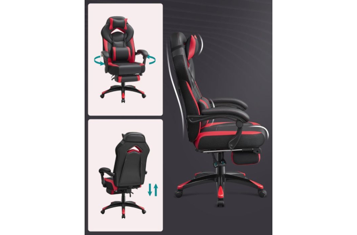 Doživite vrhunsko udobje z večfunkcijskim stolom SONGMICS OBG77BR, zasnovanim za vse, ki veliko časa preživijo za računalnikom – bodisi pri delu, učenju ali igranju. S svojim športnim videzom v črno-rdeči kombinaciji, nastavljivim naslonjalom (od 90° do 135°), izvlečnim podnožjem in dodatnima blazinama za vrat in ledveni del poskrbi za ergonomsko podporo in sprostitev. Prevleka iz umetnega usnja v kombinaciji z zračnimi tekstilnimi površinami zagotavlja udobje in preprosto vzdrževanje, medtem ko polnilo iz pene visoke gostote in robustno podnožje zagotavljata trpežnost. Stol omogoča 360° vrtenje, je nastavljiv po višini in ima tiha kolesca, primerna za vse vrste tal.