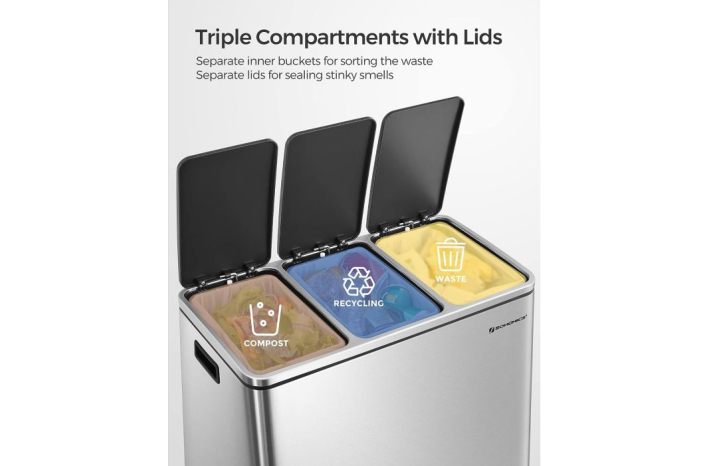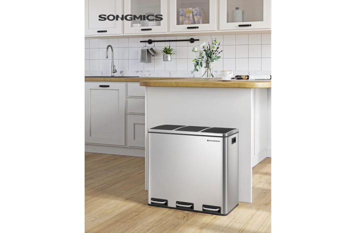 Koristen za vašo kuhinjo: Eleganten koš s pedali ima 3 predale, ki omogočajo enostavno ločevanje recikliranja, in to brez dotikanja koša.