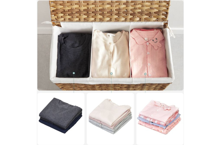 Koš za perilo je velik 66 x 33 x 60 cm in ima veliko prostornino 140 l. V 5 predalčkih lahko razvrstite svetla, temna in občutljiva oblačila za lažje čiščenje in shranjevanje.