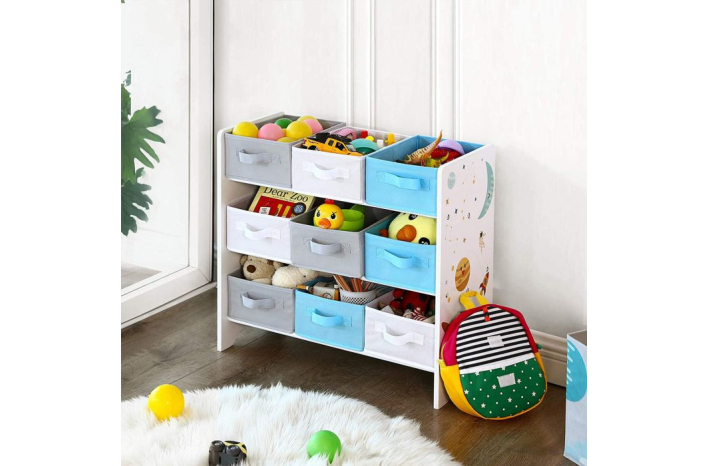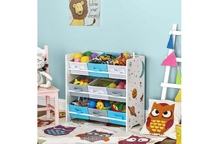 PRVI KORAK NA MESEC: planeti in zvezde bodo pritegnili vaše najmlajše, da svoje igrače, knjige in vse druge stvari spravijo v ta organizator za shranjevanje z 9 odstranljivimi škatlami, zaradi česar bo njihova soba urejena in čista.