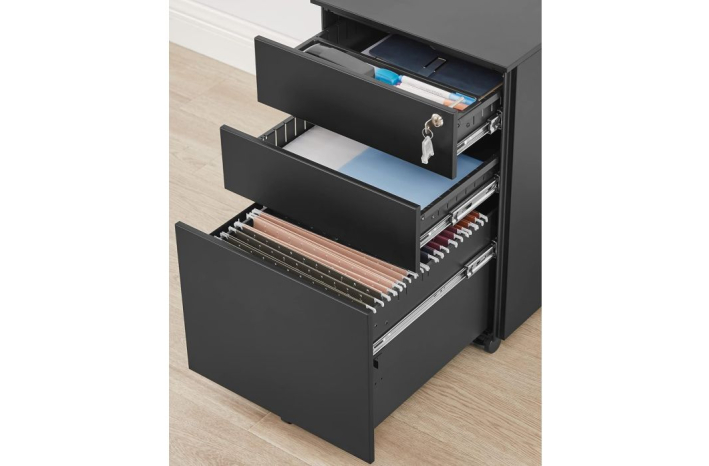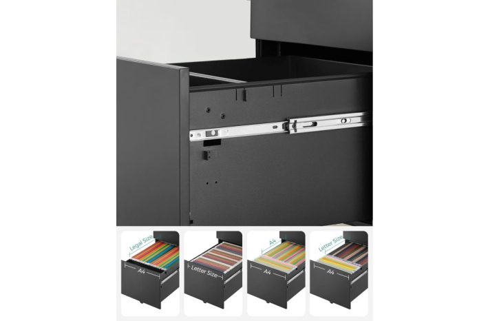 - Varnost je na prvem mestu: Potrebujete varno zavetje za pomembne dokumente? Tukaj jih lahko zaklenete. Brez ročaja, preprosto izvlecite predale s strani gladko. Zaščitene zaobljene vogale preprečujejo udarce.