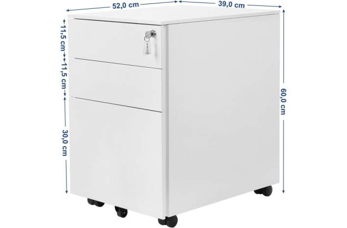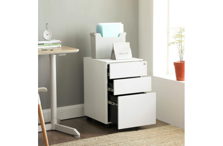 Vse na enem mestu: Želite shraniti kupce papirjev na svoji mizi? Ta omarica velikosti 39 x 52 x 60 cm bo rešila težavo in zavzela malo prostora. Ne glede na to, ali gre za papirje velikosti A4 ali mape, bo vsak našel svoje mesto v 3 prostornih predalih.