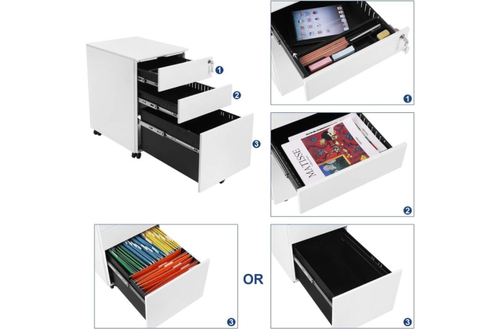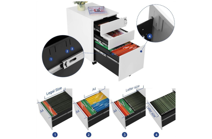 - Varnost je na prvem mestu: Potrebujete varno zavetje za pomembne dokumente? Tukaj jih lahko zaklenete. Brez ročaja, preprosto izvlecite predale s strani gladko. Zaščitene zaobljene vogale preprečujejo udarce.