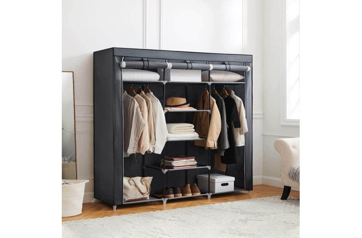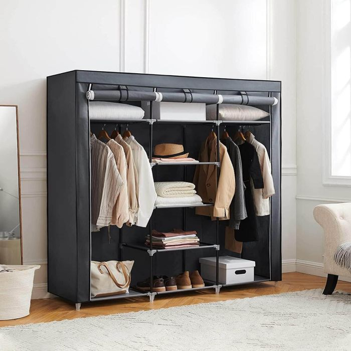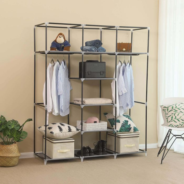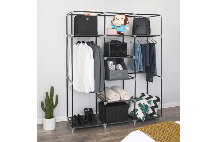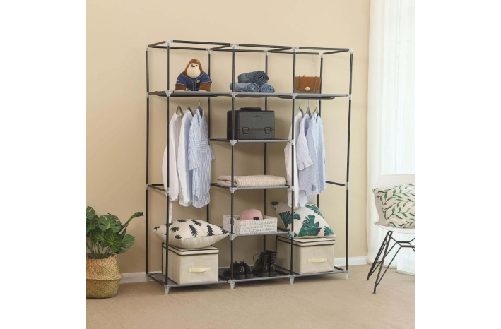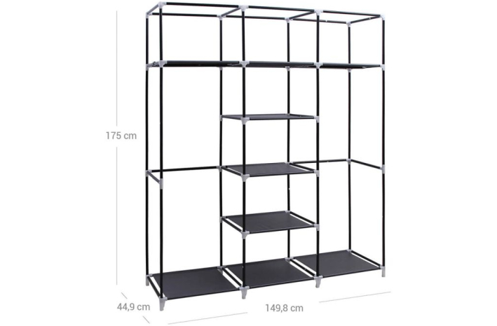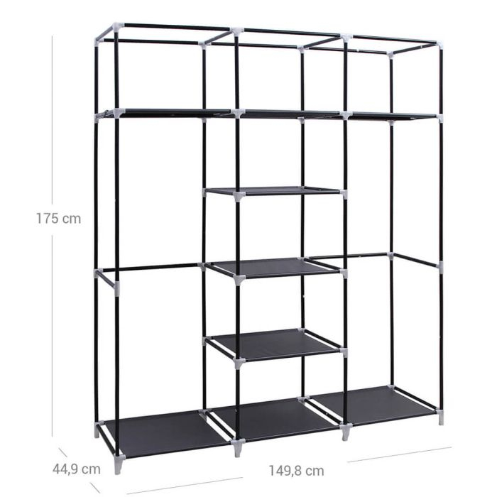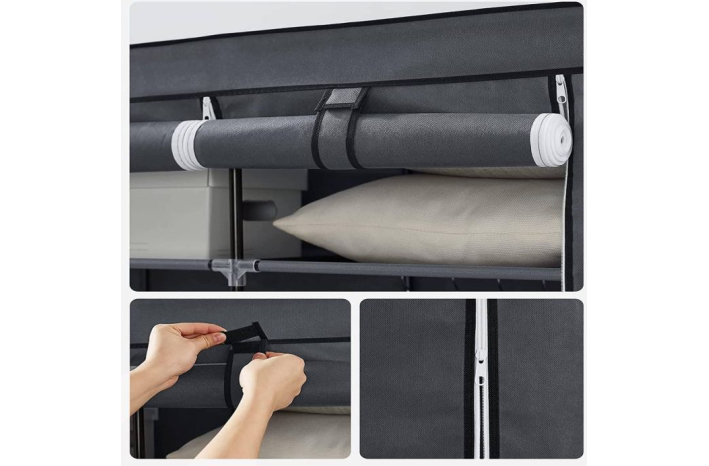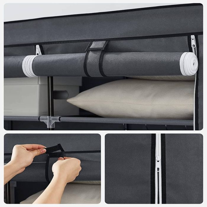 Odlična nosilnost: obešalna palica ima nosilnost 15 kg, plast tkanine pa drži 5 kg, ker je podprta kovinsko cevjo s premerom 16 mm; trdnost in vzdržljivost zložljive omare sta zagotovljeni.