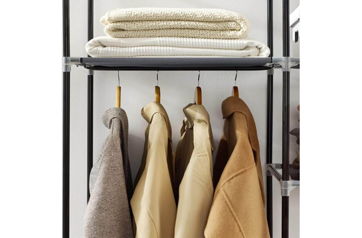 Enostavno sestavljanje: pri sestavljanju gre le za pritrditev cevi v plastične konektorje, orodja niso potrebna. Vse kar morate storiti je, da svoje srajce in obleke razstavite na obešalno letev.