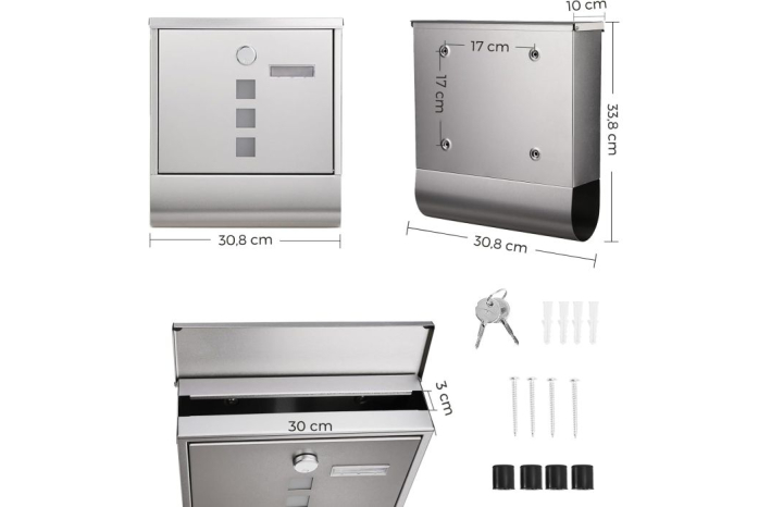 Za montažo nabiralnika ne potrebujete dodatnih pripomočkov. V paketu prejmete vijake, vložke in gumijaste distančnike, s katerimi ga hitro in preprosto pritrdite na steno.