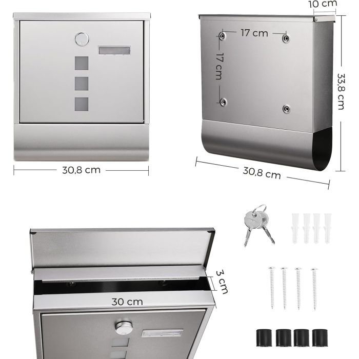 Postar pogosto odloži vaša pisma na tla pred vrati? To je lahko še posebej neprijetno v deževnih dneh, saj se lahko pošta zmoči ali izgubi. Ta Songmics nabiralnik ponuja varno zatočišče za vaše pisma in tiskovine. Izdelan iz nerjavečega jekla, zagotavlja zaščito pred vremenskimi vplivi in dolgo življenjsko dobo.