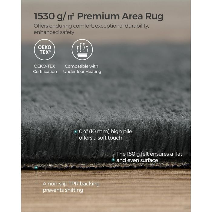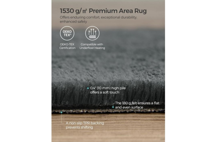 • Mehka in varna: Ta preproga je izdelana iz 100 % poliestra in je zelo mehka. Certificirana je v skladu s standardom Oeko-Tex Standard 100 in tako ustreza najstrožjim varnostnim standardom za tekstil (številka certifikata: SHO25 152411, lastnik: dobavitelj).