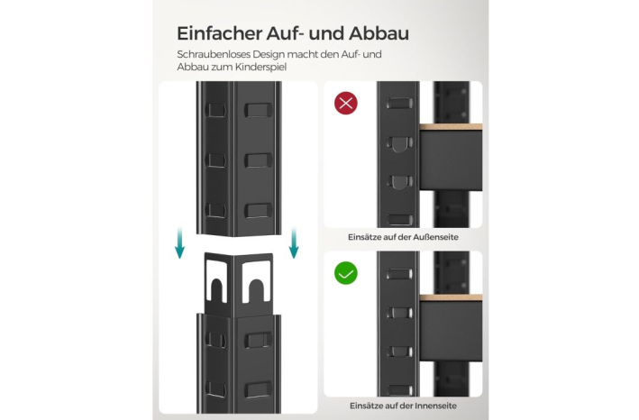 Zaradi med seboj povezanih polic in jasnih navodil lahko hitro sestavite to večnamensko polico