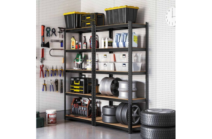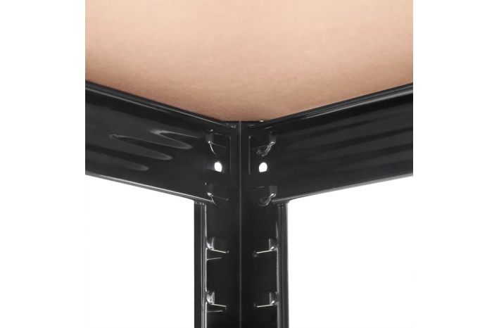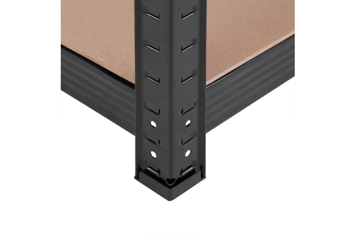 Robustne police iz ivernih plošč podpira jekleni okvir z dodatnimi ojačitvenimi palicami, vsaka polica lahko drži do 175 kg in varno podpira barve, orodja in fitnes opremo.