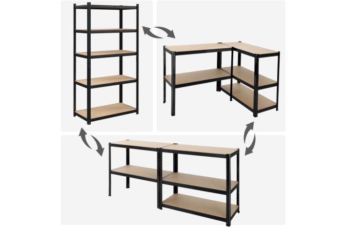 Za sestavo regala za shranjevanje ni potrebno orodje, dele lahko med seboj povežete s spoji z režami, višino med policami pa lahko prilagodite za prilagodljivo shranjevanje