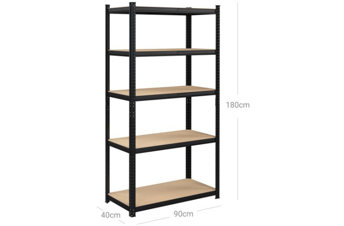 SONGMICS 5-stopenjski regal, jekleni regal za shranjevanje, montaža brez orodja, za garažo, lopo, nosilnost 875 kg, 40 x 90 x 180 cm, črna GLR040B01