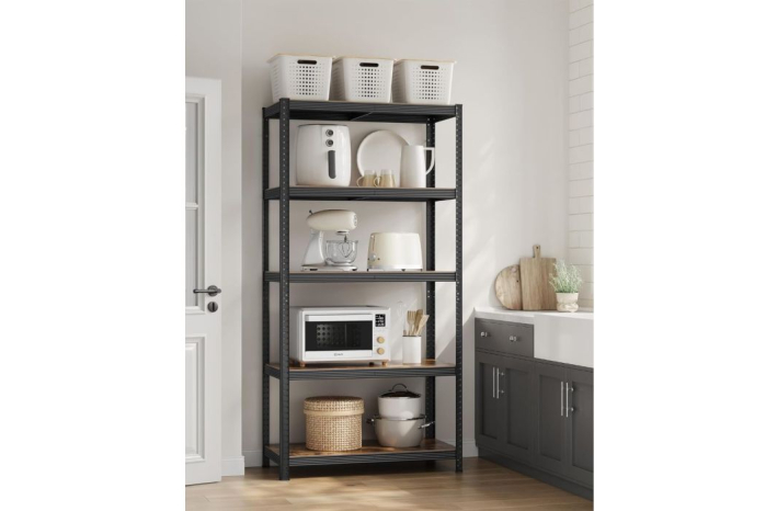 SONGMICS večnamenske stoječe police, knjižne police, police za shranjevanje, 5 polic, kuhinjske police, police, 50 x 100 x 200 cm, nosilnost 870 kg, nastavljive police, industrijski dizajn, naravna črna GLR030B11
