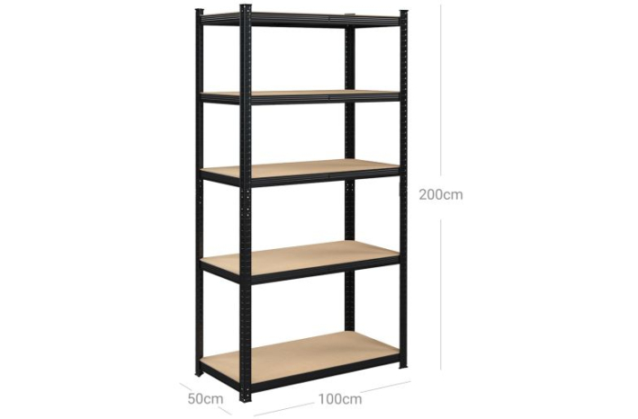 SONGMICS 5-stopenjski regal, jekleni regal za shranjevanje, montaža brez orodja, za garažo, lopo, nosilnost 600 kg, 50 x 100 x 200 cm, črna GLR050B01