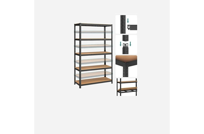 Težka regalna enota je z obliko z blokado in jasnimi navodili enostavna za montažo in ne potrebuje orodja.