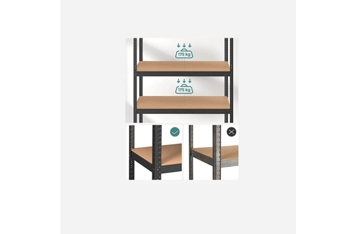 Garažna regalska enota je izdelana iz jeklenega okvirja, vsaka raven pa lahko podpira do 175 kg. Priloženi komplet proti prevračanju lahko pomaga pritrditi regalno enoto na steno, zato je bolj stabilna in varna.