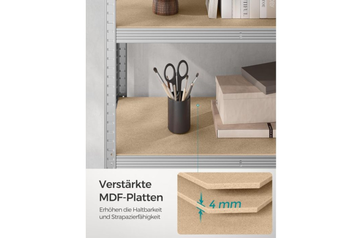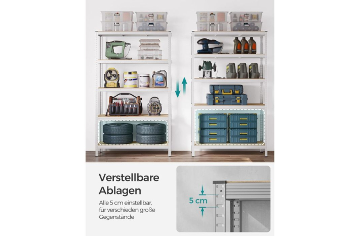 Vzdržljiv in stabilen: težka polica je izdelana iz jeklenega okvirja, vsaka polica lahko prenese do 175 kg. S priloženo zaščito za nagib lahko polico pritrdite na steno, zato je bolj stabilna in varna.