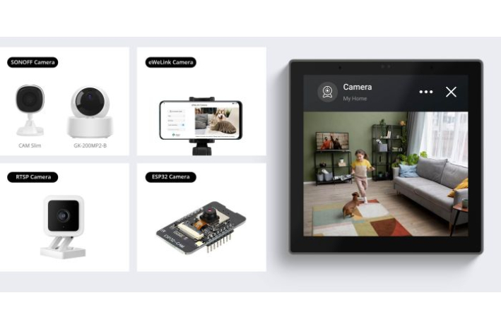 NSPanel Pro se lahko uporablja kot zaslon, podpira dodajanje naslednjih štirih vrst kamer za spremljanje v živo. Na plošči si lahko kadar koli ogledate spremljanje dnevne sobe, garaže, spalnice itd. v realnem času.