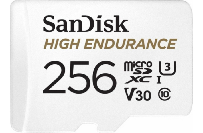 Kartica SanDisk High Endurance microSD z oznako razreda 10 in video hitrostjo U3 in V304 omogoča snemanje v Full HD ali 4K.