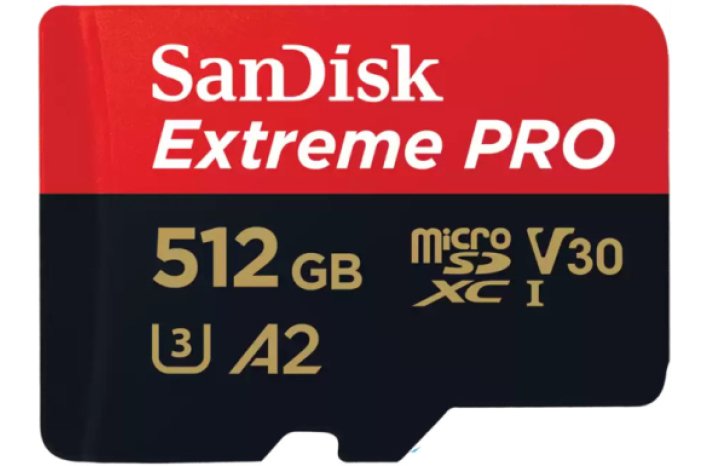 Izjemno zmogljiva spominska kartica SDXC-Micro 512GB Sandisk Extreme Pro za hitre prenose in snemanje videov visoke ločljivosti.