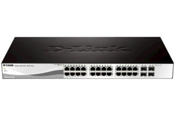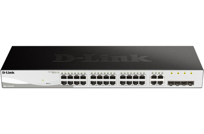 D-Link DGS-1210-28. Število osnovnih preklopnih vrat RJ-45 Ethernet: 24. Polni dupleks. Tabela naslovov MAC: 16000 vnosov, zmogljivost usmerjanja/preklapljanja: 56 Gbps. Omrežni standard: IEEE 802.3, IEEE 802.3ab, IEEE 802.3u, IEEE 802.3x. Možnost namestitve v rack, oblikovni faktor: 1U