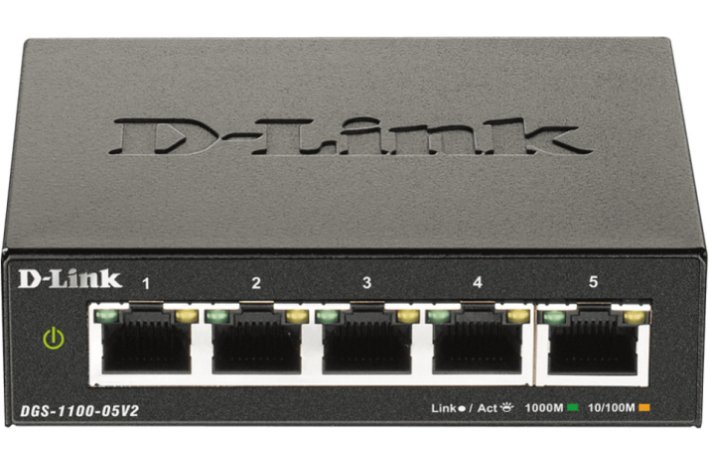 Gigabitno pametno upravljano stikalo D-link s 5 vrati za hitro in preprosto omrežno upravljanje.