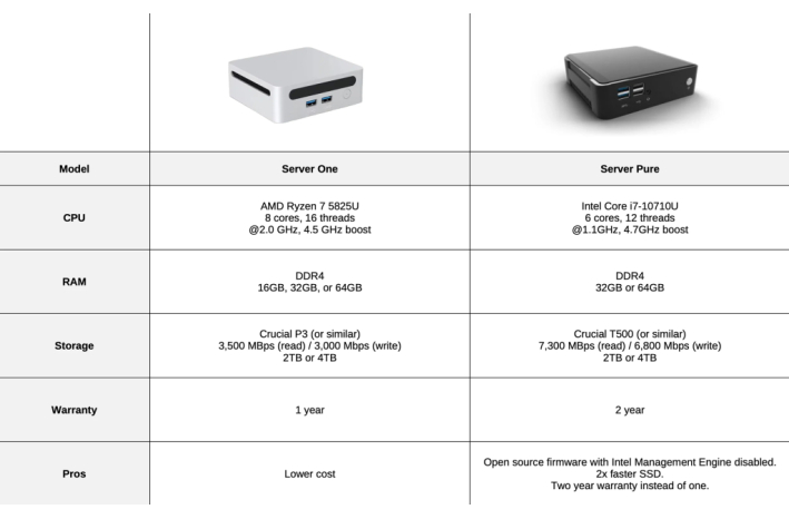 Start9 Server One je napreden strežnik za domačo in pisarniško uporabo. Omogoča varno in zasebno upravljanje podatkov ter aplikacij, kar uporabnikom daje popoln nadzor nad njihovo digitalno infrastrukturo. Popoln je za vse, ki želijo nadzorovati svoje podatke in aplikacije brez odvisnosti od tretjih oseb.