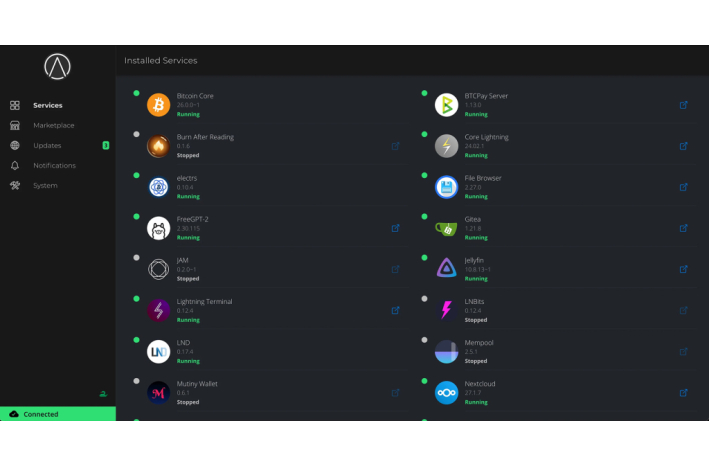 Start9 podpira vrsto različnih storitev v odprtokodni različici. Poganjate lahko lastne različice storitev, ki so podobne Dropboxu, iPhoto, Lastpass, iMessage, GitHub in mnoge druge. Številne aplikacije so na voljo na Start9 Marketplace.