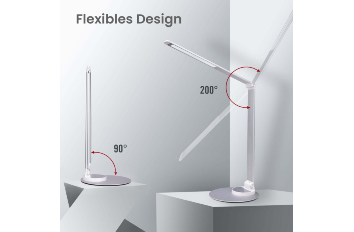 TaoTronics TT-DL22 LED namizna svetilka združuje sodobno obliko in vrhunsko funkcionalnost, kar omogoča optimalno osvetlitev za delo, branje ali sprostitev. Njena prilagodljiva glava in roka omogočata enostavno nastavitev kota svetlobe, kar zagotavlja, da svetloba vedno pade tja, kjer jo najbolj potrebujete. Z izbiro med petimi barvnimi temperaturami in šestimi stopnjami svetlosti, lahko ustvarite popolno vzdušje za vsak trenutek dneva. Vgrajena USB vrata omogočajo enostavno polnjenje naprav, medtem ko njena varčna LED tehnologija zagotavlja dolgo življenjsko dobo in nizko porabo energije. TaoTronics TT-DL22 je zanesljiva in elegantna rešitev za vse vaše potrebe po osvetlitvi.