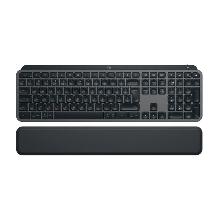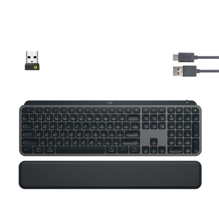 Tipkovnica MX Keys S s slovensko gravuro na nizkoprofilnih rahlo vbočenih tipkah. Zasnovana je za udobno tipkanje, ima aluminijasto ohišje in je opremljena s pametno osvetlitvijo. Omogoča povezavo z Logi Bolt USB sprejemnikom ali preko Bluetooth. Podpira tudi tehnologijo Flow, s katero lahko MX Keys S uporabljate na več napravah hkrati. Baterija ji omogoča do 10 dni uporabe z osvetlitvijo in polnjenje z USB-C kablom. Priložen naslon za zapestje.